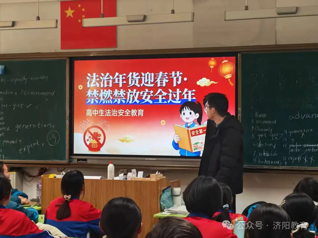 济阳区垛石街道办事处中学通过向学生普及交通安全、烟花爆竹禁燃禁放、预防未成年人犯罪等相关法律法规,引导学生树立法治意识和安全意识,杜绝危险行为,做到学法、懂法、守法、用法,度过一个平安、文明、法治的新春佳节;同时持续推进法治进校园活动走深走实,不断强化未成年人法治教育。