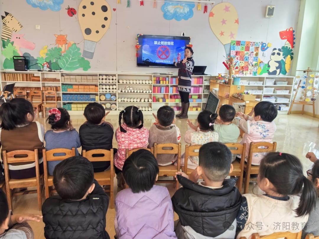 济阳区回河街道办事处幼儿园开展了“法治年货迎新春——禁止燃放烟花爆竹”主题活动,通过国旗下讲话分享禁燃小常识,教师借助趣味故事、生动图片,向孩子们科普烟花爆竹的安全隐患与环境危害,用孩子易于理解的语言传递“禁燃禁放”知识。