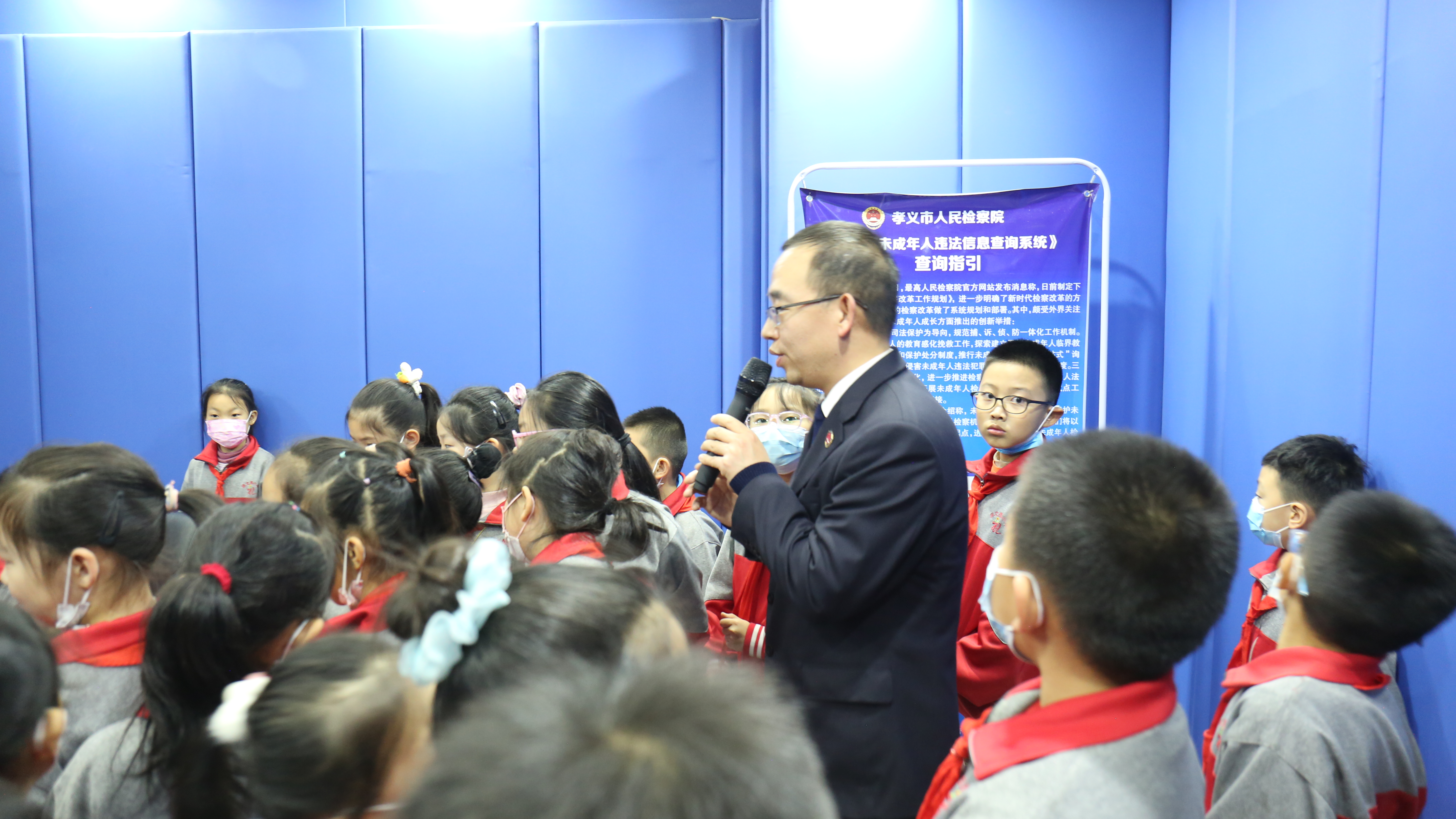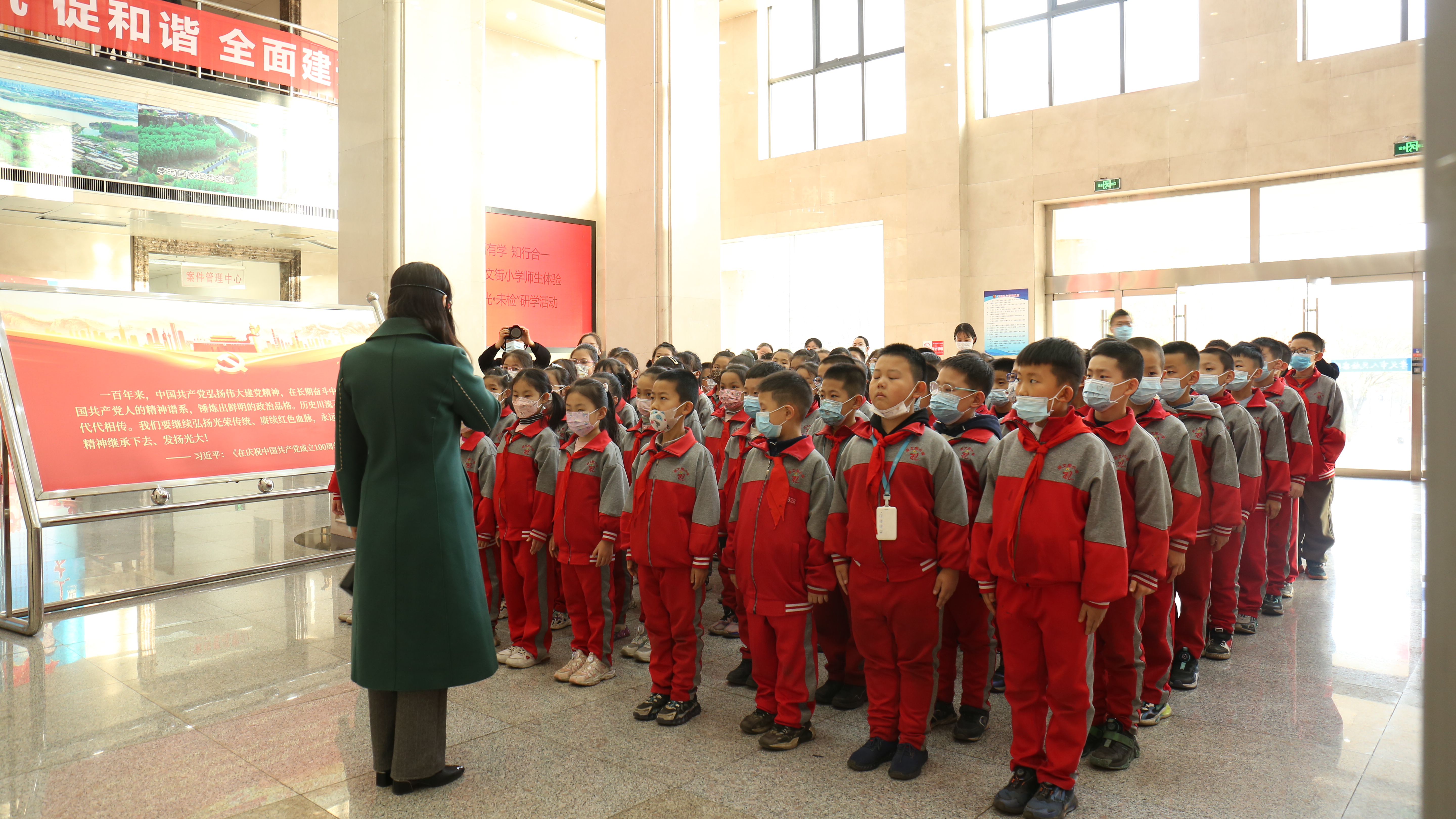 为认真落实中央关于深入学习宣传和贯彻实施宪法的有关要求,培养同学们“爱国、守法、诚信、知礼”的良好品质,大力弘扬法治精神,提高青少年的法律意识,增强青少年的法治观念,让学生从小树立正确的人生观、价值观、世界观,共建共筑平安和谐校园。孝义市崇文街小学345班全体学生在副校长、法治副校长和政教主任的带领下,走进孝义市检察院实地参观,着实进行了一次“小公民、大体验”的研学活动。